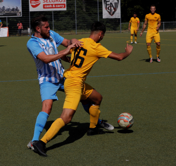 04.08.2019 Neu-Isenburg-Gravenbruch Saison 2019/2020 Glaabsbräu Pokal 1. Runde SSG Gravenbruch gegen TUS Zeppelinheim Cedric Thiel (TUS Zeppelinheim) gegen Milton Kawusu (TUS Zeppelinheim) ****** Foto: Peter Hartenfelser