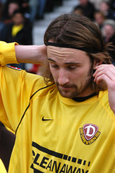 Dynamo Dresden, 2. Bundesliga, Joshua Blake Kennedy richtet sich vor dem Spiel das Haarband. Bild ist Honorarpflichtig, auf Anfrage in h?herer Qualit?t