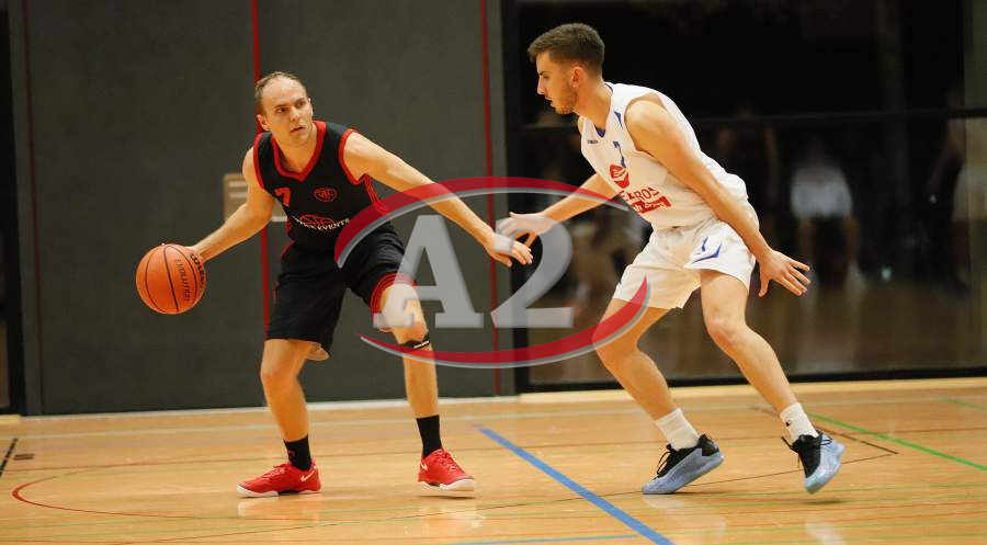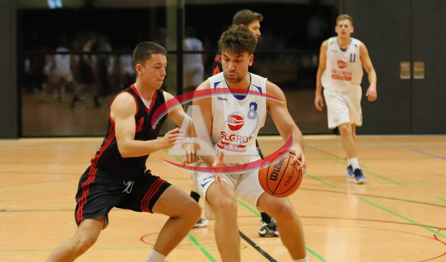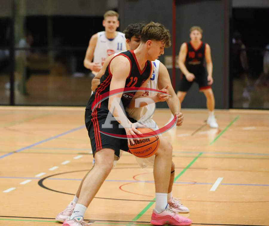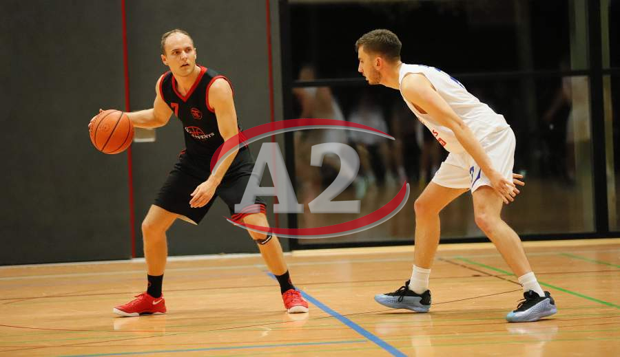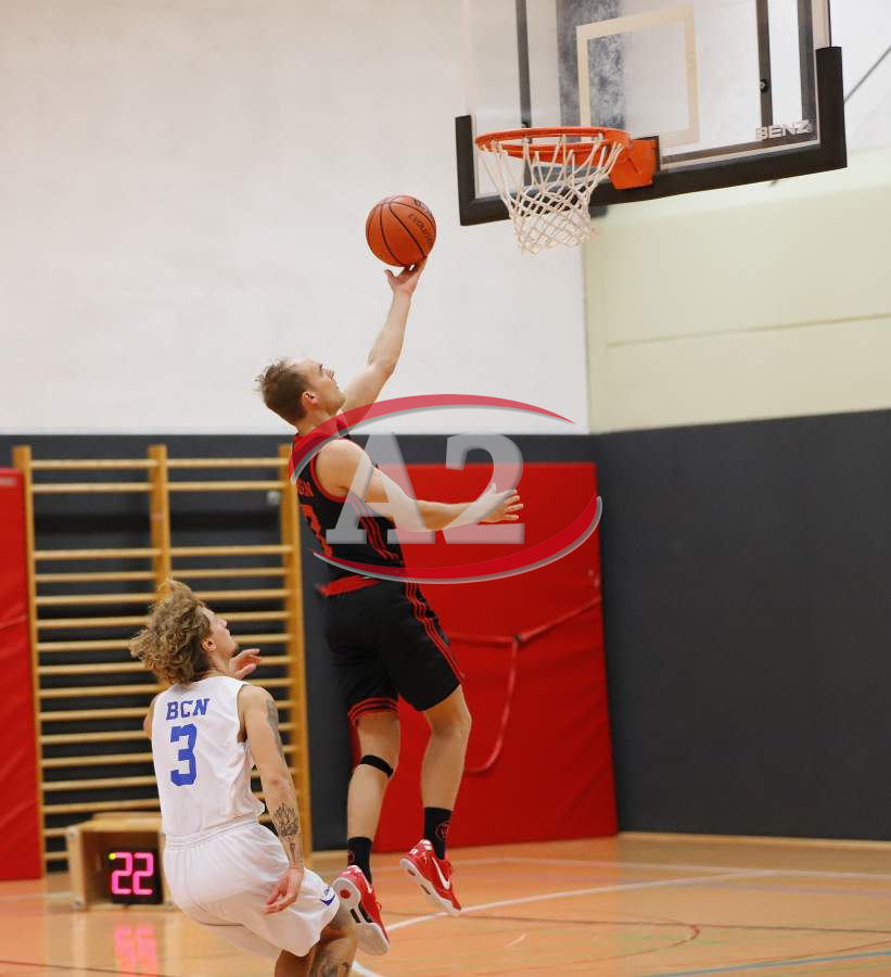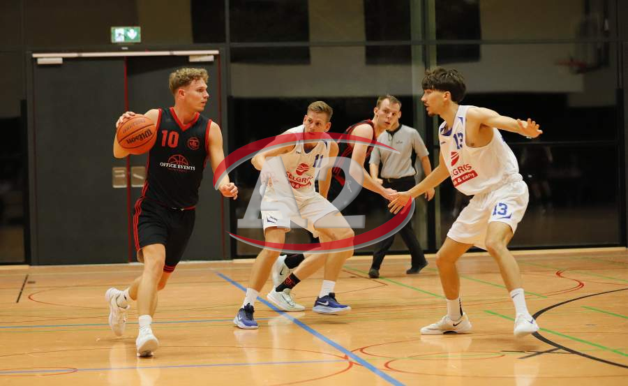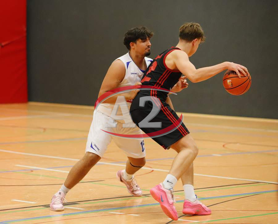 27.09.2025 xphx Neu-Isenburg, Sportpark Basketball 2. Regionalliga Herren Nord BC Neu-Isenburg - TV Langen II Felix Lewe (7, TV) gegen Demi Daniel Kajabegovic (7, BC) ********* Foto: Peter Hartenfelser