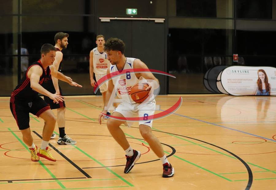 27.09.2025 xphx Neu-Isenburg, Sportpark Basketball 2. Regionalliga Herren Nord BC Neu-Isenburg - TV Langen II Lucas Jovanovski (4, TV) gegen Amir Dorn (8, BC) ********* Foto: Peter Hartenfelser