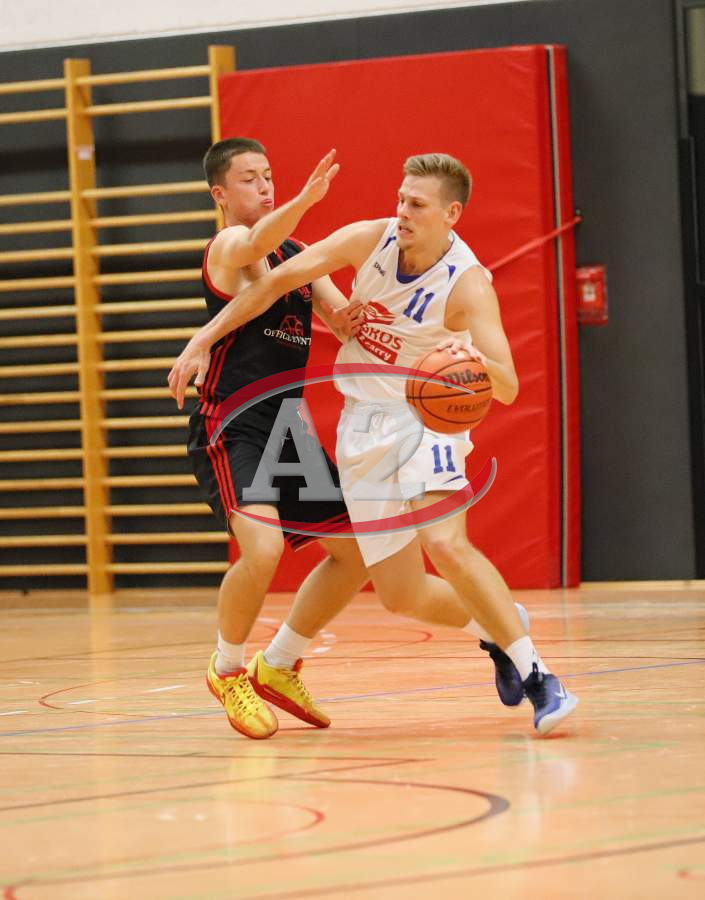 27.09.2025 xphx Neu-Isenburg, Sportpark Basketball 2. Regionalliga Herren Nord BC Neu-Isenburg - TV Langen II Fabio Wedel (11, BC) gegen Niklas Richter (17, TV) ********* Foto: Peter Hartenfelser
