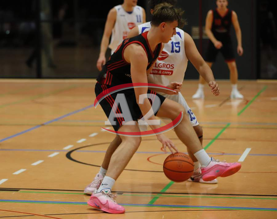 27.09.2025 xphx Neu-Isenburg, Sportpark Basketball 2. Regionalliga Herren Nord BC Neu-Isenburg - TV Langen II Niklas Keßler (10, TV) gegen Fabio Wedel (11, BC) ********* Foto: Peter Hartenfelser
