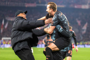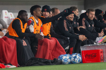 v.l. Minjae Kim (FC Bayern Muenchen), Nick Woltemade, Julian Gaston Chabot, Josha Vagnoman, Maximilian Mittelstädt (VfB Stuttgart), Harry Edward Kane (FC Bayern Muenchen) und Torwart Alexander Nübel (VfB Stuttgart).
