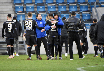 Torwarttrainer Marc Stephani (FSV Frankfurt) umarmen