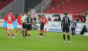 Tumult nach Foul an Onur Ünlücifci (8, OFC) führt dann zur roten Karte für Nico Tadic (Villingen), Trainer Steffen Breinnlinger ist empört