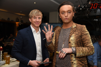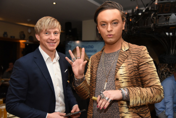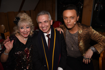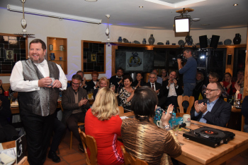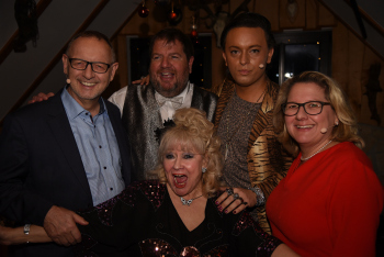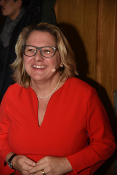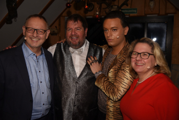 Bild zeigt: HR-Intendant Manfred Krupp, Eva von den Jacob Sisters mt Gastgeber und Moderator Bernd Reisig und TV-Darsteller Julian F.M. Joeckel, Bundesumweltministerin Svenja Schulze, vorne Eva von den Jakob-Sisters