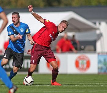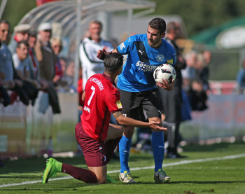 xxx 16.09.2017, Fussball Lotto Hessenliga, SC Hessen Dreieich - SV Steinbach, emspor v.l. Florian Muenkel (SV Steinbach), Denis Talijan (SC Hessen Dreieich)