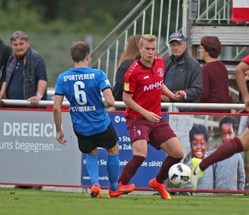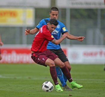 xxx 16.09.2017, Fussball Lotto Hessenliga, SC Hessen Dreieich - SV Steinbach, emspor v.l. Julian Rohde (SV Steinbach), Zubayr Amiri (SC Hessen Dreieich)