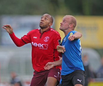 xxx 16.09.2017, Fussball Lotto Hessenliga, SC Hessen Dreieich - SV Steinbach, emspor v.l. Petr Paliatka (SV Steinbach), Danny Klein (SC Hessen Dreieich)