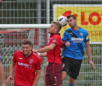 xxx 16.09.2017, Fussball Lotto Hessenliga, SC Hessen Dreieich - SV Steinbach, emspor v.l. Luftkampf Denis Talijan (SC Hessen Dreieich), Ljubisa Gavric (SC Hessen Dreieich), Petr Kvaca (SV Steinbach)