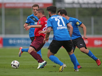 xxx 16.09.2017, Fussball Lotto Hessenliga, SC Hessen Dreieich - SV Steinbach, emspor v.l. Nikolai Mlasenovic (SC Hessen Dreieich), Steffen Trabert Kapitaen (SV Steinbach), Andre Fliess (SC Hessen Dreieich), Michael Wiegand (SV Steinbach)