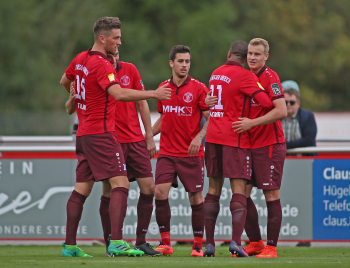 xxx 16.09.2017, Fussball Lotto Hessenliga, SC Hessen Dreieich - SV Steinbach, emspor v.l. Torjubel zum 2:0 Denis Talijan (SC Hessen Dreieich), Andre Fliess (SC Hessen Dreieich), Carlos McCrary (SC Hessen Dreieich), Marc Schnier (SC Hessen Dreieich)