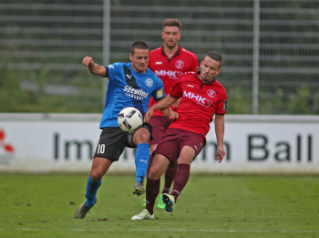 xxx 16.09.2017, Fussball Lotto Hessenliga, SC Hessen Dreieich - SV Steinbach, emspor v.l. Petr Paliatka (SV Steinbach), Nikolai Mlasenovic (SC Hessen Dreieich), Denis Talijan (SC Hessen Dreieich)