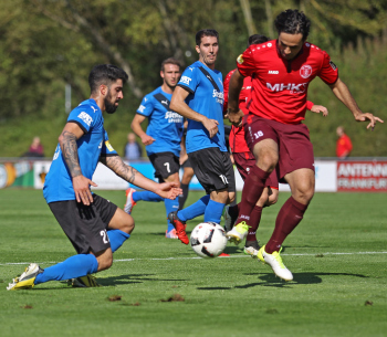 xxx 16.09.2017, Fussball Lotto Hessenliga, SC Hessen Dreieich - SV Steinbach, emspor v.l. Andre Fliess (SC Hessen Dreieich) schaut zu beim R?ckzieher von Ferhat Yildiz (SV Steinbach)