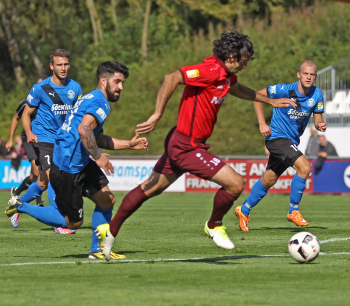 xxx 16.09.2017, Fussball Lotto Hessenliga, SC Hessen Dreieich - SV Steinbach, emspor v.l. Niko Opper Kapitaen (SC Hessen Dreieich), Petr Kvaca (SV Steinbach), Julian Rohde (SV Steinbach)