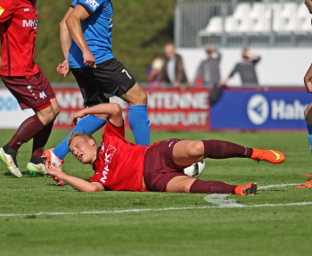 xxx 16.09.2017, Fussball Lotto Hessenliga, SC Hessen Dreieich - SV Steinbach, emspor v.l. Marc Schnier (SC Hessen Dreieich) am Boden nach Foulspiel