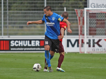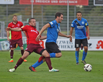 xxx 16.09.2017, Fussball Lotto Hessenliga, SC Hessen Dreieich - SV Steinbach, emspor v.l. Florian Muenkel (SV Steinbach), Ljubisa Gavric (SC Hessen Dreieich)