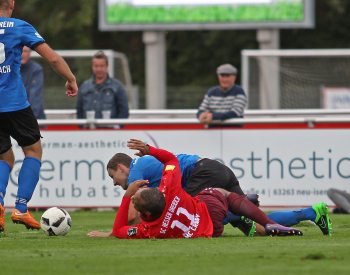 xxx 16.09.2017, Fussball Lotto Hessenliga, SC Hessen Dreieich - SV Steinbach, emspor v.l. Florian Muenkel (SV Steinbach) foult Ljubisa Gavric (SC Hessen Dreieich)
