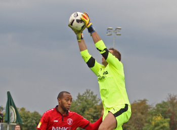 xxx 16.09.2017, Fussball Lotto Hessenliga, SC Hessen Dreieich - SV Steinbach, emspor v.l. Carlos McCrary (SC Hessen Dreieich), Marco Motzkus Torwart (SV Steinbach)