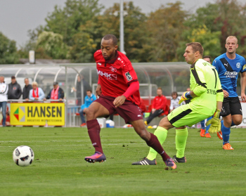 xxx 16.09.2017, Fussball Lotto Hessenliga, SC Hessen Dreieich - SV Steinbach, emspor v.l. Torschuetze zum 3:0 Carlos McCrary (SC Hessen Dreieich)