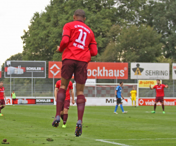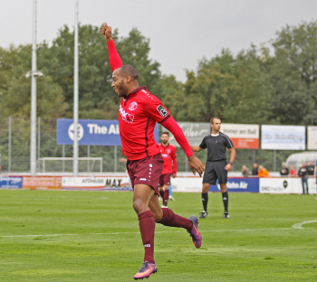 xxx 16.09.2017, Fussball Lotto Hessenliga, SC Hessen Dreieich - SV Steinbach, emspor v.l. Torjubel von Carlos McCrary (SC Hessen Dreieich)