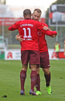 xxx 16.09.2017, Fussball Lotto Hessenliga, SC Hessen Dreieich - SV Steinbach, emspor v.l. Torjubel Carlos McCrary (SC Hessen Dreieich) und Danny Klein (SC Hessen Dreieich)