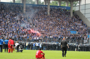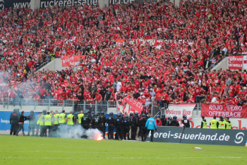 Randale der OFC Fans f?hrt zur Spielunterbrechung