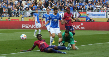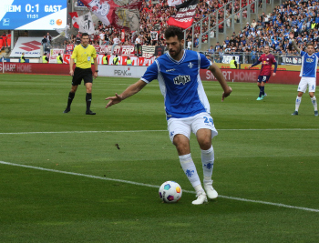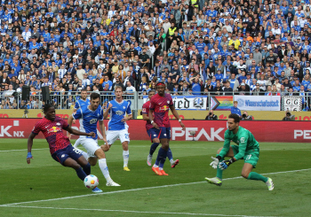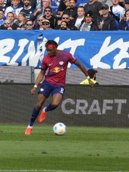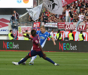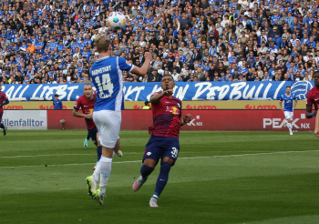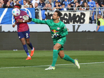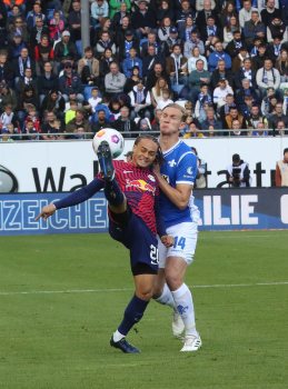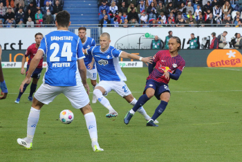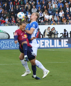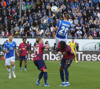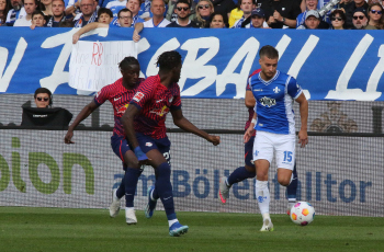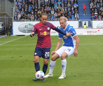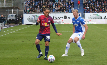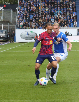 vorne Luca Pfeiffer (24, SV98), Tim Skarke (27, SV98) gegen XAVI SIMONS (20, RB Leipzig)
