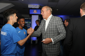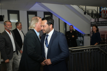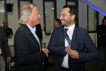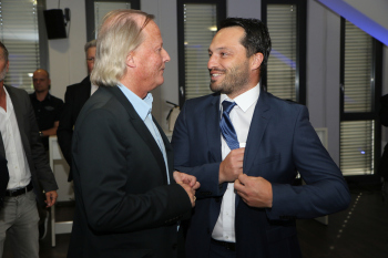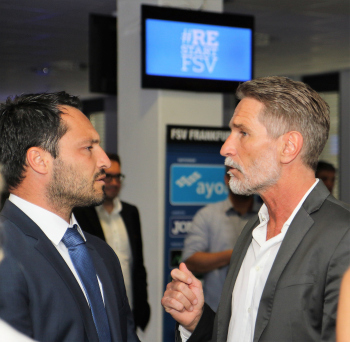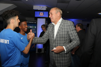 08.06.2017 Frankfurt am Main, Frankfurter Volksbank Stadion, FSV Frankfurt Charity-Dinner Eintracht Frankfurts Pr?sident Peter Fischer spricht mit FSV Frankfurt Jugendspieler *** Foto: Hartenfelser