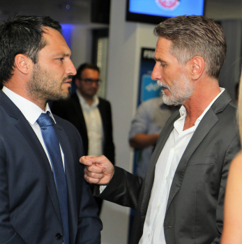 08.06.2017 Frankfurt am Main, Frankfurter Volksbank Stadion, FSV Frankfurt Charity-Dinner Ex-FSV Spieler Thomas Brendel mit Trainer Alexander Conrad (FSV Frankfurt) *** Foto: Hartenfelser