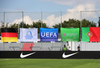 07.09.2022 Dreieich, Sportpark Dreieich UEFA Youth League 1. Spieltag Eintracht Frankfurt - Sporting CP Lissabon Symbolbild - Fahnen von der UEFA und Eintracht Frankfurt - Sporting CP Lissabon emspor, ********* Foto: Peter Hartenfelser