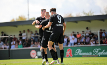 07.09.2022 Dreieich, Sportpark Dreieich UEFA Youth League 1. Spieltag Eintracht Frankfurt - Sporting CP Lissabon Torjubel nach dem Tor zum 1:1 Ausgleich durch Ginaluca Schäfer (Eintracht Frankfurt) emspor, ********* Foto: Peter Hartenfelser