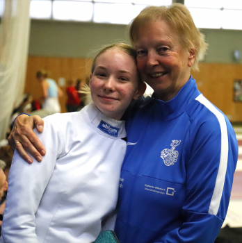 02.11.2024 Offenbach DFB Qualifikationsturnier 16 Stefan-Haukler-Memoriam 2024 - Fechten Damen Marie Moll FC Offenbach mit Gudrun Bayer. Präsidentin FC Offenbach ********* Foto: A2Bildagentur