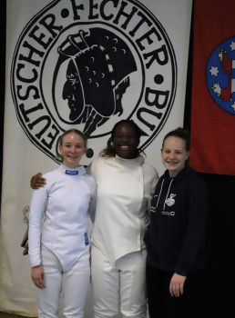 02.11.2024 Offenbach DFB Qualifikationsturnier 16 Stefan-Haukler-Memoriam 2024 - Fechten Damen Marie Moll, Caroline Omosefe Enoma, Antonia Petrovici FC Offenbach ********* Foto: A2Bildagentur