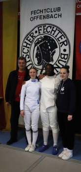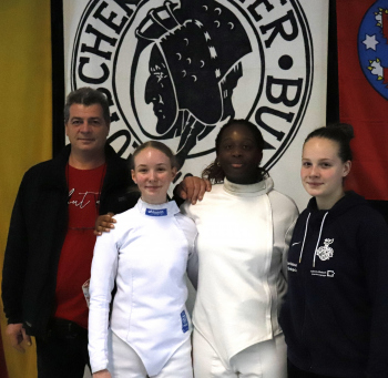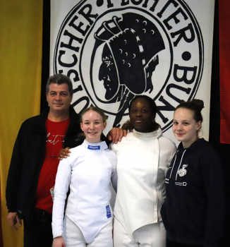 02.11.2024 Offenbach DFB Qualifikationsturnier 16 Stefan-Haukler-Memoriam 2024 - Fechten Damen Trainer Gabriel Petrovici, Marie Moll, Caroline Omosefe Enoma, Antonia Petrovici FC Offenbach ********* Foto: A2Bildagentur