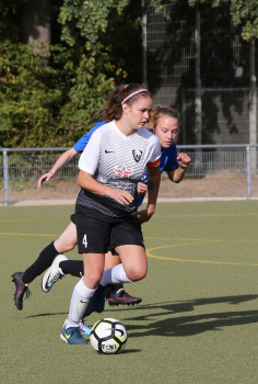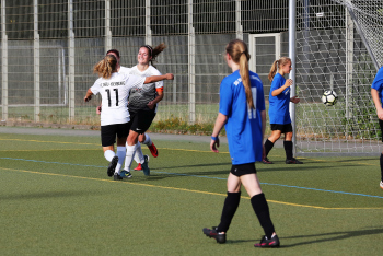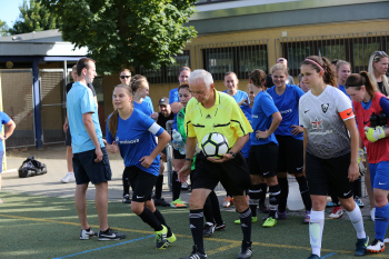 Tamina Probst (SG Blau Gelb/Riedberg) Schiedsrichter Rudolf Wrbanatz, Maren Bambach (FC Neu-Isenburg )