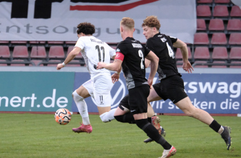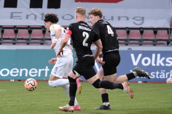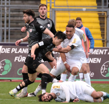 Min Gi Kang (7, Hessen Kassel), Nikos Zografakis (25, Hessen Kassel) gegen Noah Awassi (26, FSV Frankfurt)