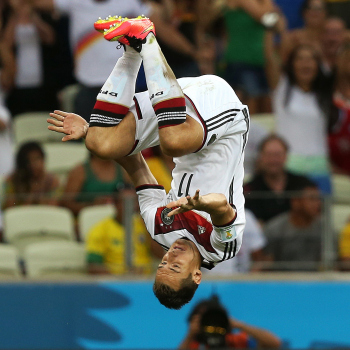 BRASILIEN, FORTALEZA. 21.06.2014 FUSSBALL - Deutschland vs Ghana, WM 2014 , Gruppe G - Estadio Castelao Torjubel - Salto Miroslav Klose (11) of Deutschland