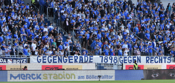19.09.2021 Darmstadt. Merck-Stadion am Böllenfalltor 2.Bundesliga, Saison 2020/2021 SV Darmstadt 98 gegen SG Dynamo Dresden Auf der Gegengeraden bekennen sich die Lilien-Fans gegen RECHTS ********* Foto: Peter Hartenfelser