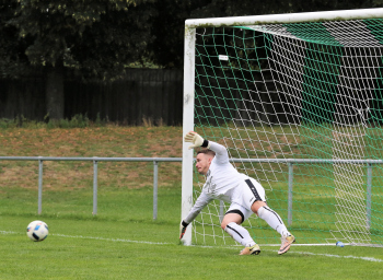 12.08.2019, xmgoodx Neu-Isenburg KOL Saison 2018/2019 TSG Neu-Isenburg - SG Götzenhain Torwart Marcel Frank (TSG) hält den Elfmeter ****** Foto: Peter Hartenfelser