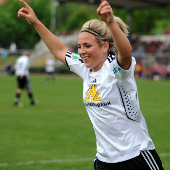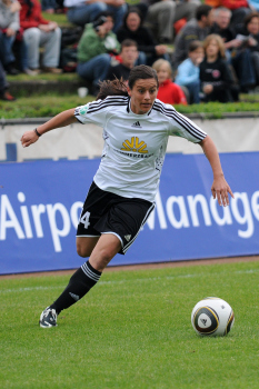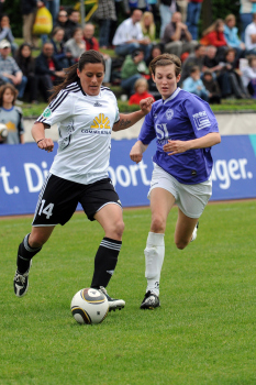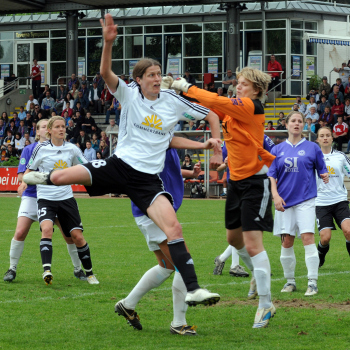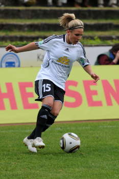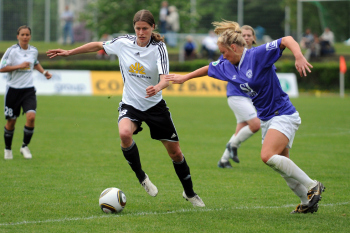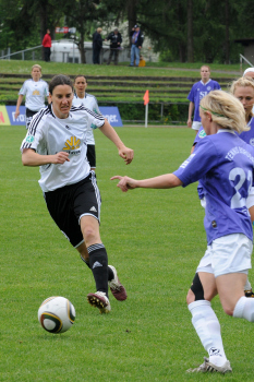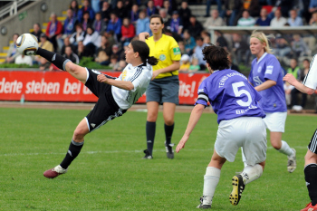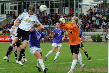Saison 2009/2010 , 1. FFC Frankfurt : Tennis Borussia Berlin, Kerstin Garefrekes (FFC) trifft , Torwart Cordula Busack (TBB) hat keine Chance