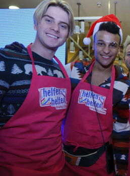 06.12.2023 Frankfurt am Main, Römerhalle Bernd-Reisig-Stiftung „helfen helfen“ Zum 11. mal Weihnachtsgans-Essen für Obdachloe und hilfsbedürftige Menschen Bild zeigt Vincent Gross (Schlagersänger) und Prince Damien (Sänger, Tänzer), ********* Foto: Peter Hartenfelser