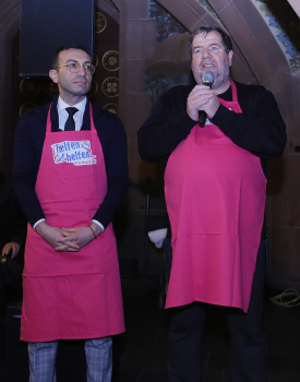 06.12.2023 Frankfurt am Main, Römerhalle Bernd-Reisig-Stiftung „helfen helfen“ Zum 11. mal Weihnachtsgans-Essen für Obdachloe und hilfsbedürftige Menschen Bild zeigt Frankfurts Oberbürgermeister Mike Josef mit Gastgeber Bernd Reisig ********* Foto: Peter Hartenfelser