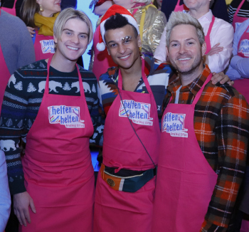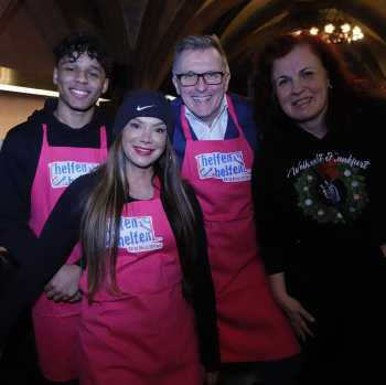 06.12.2023 Frankfurt am Main, Römerhalle Bernd-Reisig-Stiftung „helfen helfen“ Zum 11. mal Weihnachtsgans-Essen für Obdachloe und hilfsbedürftige Menschen Bild zeigt: Vincent Gross (Schlagersänger) Prince Damien (Sänger, Tänzer) Maura Porrmann (Sängerin und Tischkicker-Weltmeisterin) Maura Porrmann (Sängerin und Tischkicker-Weltmeisterin) ********* Foto: Peter Hartenfelser