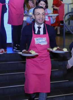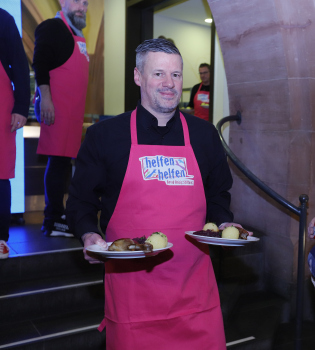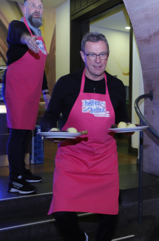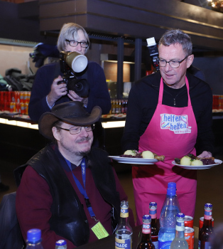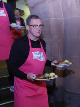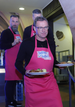 06.12.2023 Frankfurt am Main, Römerhalle Bernd-Reisig-Stiftung „helfen helfen“ Zum 11. mal Weihnachtsgans-Essen für Obdachloe und hilfsbedürftige Menschen Bild zeigt Österreichs Nationaltrainer Ralf Rangnick als perfekter Kellner ********* Foto: Peter Hartenfelser