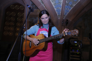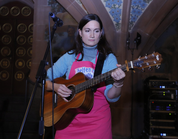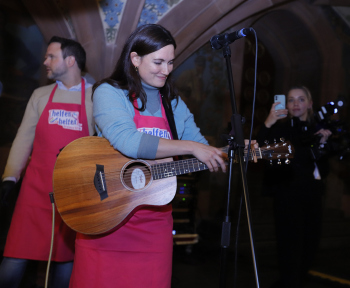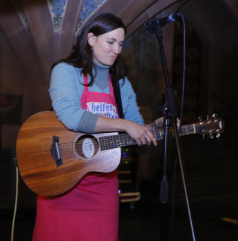 06.12.2023 Frankfurt am Main, Römerhalle Bernd-Reisig-Stiftung „helfen helfen“ Zum 11. mal Weihnachtsgans-Essen für Obdachloe und hilfsbedürftige Menschen Bild zeigt Sägerin und Tischkicker-Weltmeisterin Maura Porrmann ********* Foto: Peter Hartenfelser