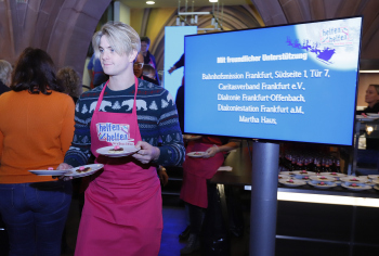 06.12.2023 Frankfurt am Main, Römerhalle Bernd-Reisig-Stiftung „helfen helfen“ Zum 11. mal Weihnachtsgans-Essen für Obdachloe und hilfsbedürftige Menschen Bild zeigt Nargess Eskandari-Grünberg (Stadt Frankfurt) ********* Foto: Peter Hartenfelser