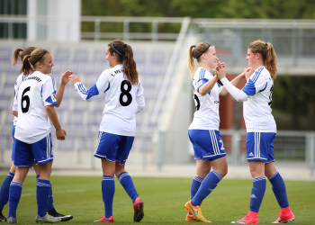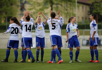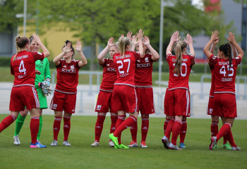 16.04.2017 xcex Deutschland, Frankfurt, Fussball, Frauenfussball 2. Frauen Bundesliga S?d Saison 2016/2017 1. FFC Frankfurt II gegen TSV Schott Mainz Abklatschen TSV Schott Mainz ***** Foto: A2/Hartenfelser