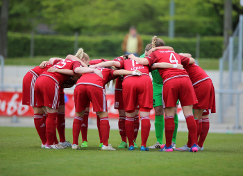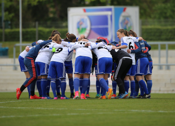 16.04.2017 xcex Deutschland, Frankfurt, Fussball, Frauenfussball 2. Frauen Bundesliga S?d Saison 2016/2017 1. FFC Frankfurt II gegen TSV Schott Mainz die Frankfurter Spielerinnen schw?ren sich im Mannschaftskreis ein ***** Foto: A2/Hartenfelser