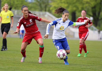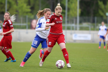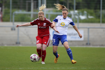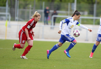 16.04.2017 xcex Deutschland, Frankfurt, Fussball, Frauenfussball 2. Frauen Bundesliga S?d Saison 2016/2017 1. FFC Frankfurt II gegen TSV Schott Mainz Valentina Limani (Frankfurt) vor Samantha Herrmann (Mainz) ***** Foto: A2/Hartenfelser